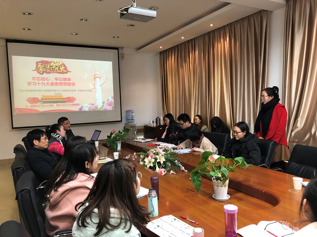 12月12日,校党委组织部、党校和机关党委党支部与人文学院本科生第一党支部成员共同召开了以“研习党章共话党的十九大,不忘初心共建促成长”的主题共建交流会,加深了支部成员对党的历史的理解,明确了新时代党员“不忘初心、牢记使命”的历史目标。座谈会由双方党支部书记共同主持,人文学院党委副书记、副院长吴宝锁参与了座谈会。