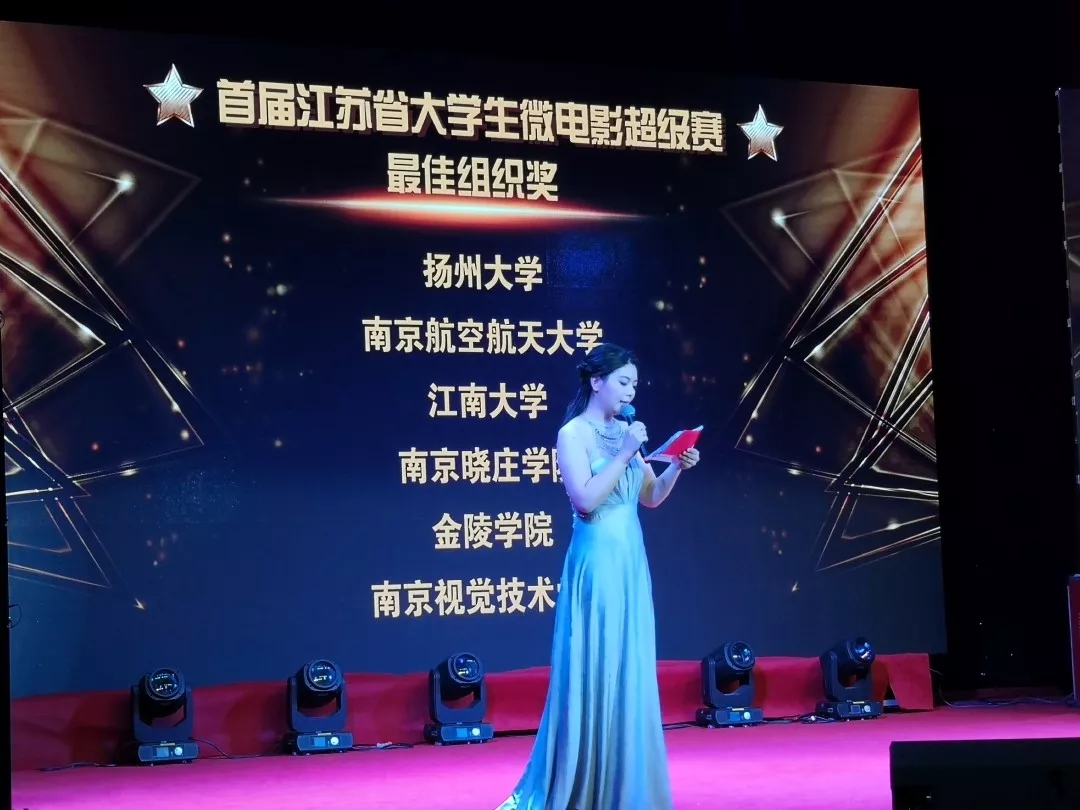 10月28日,由中国电影评论学会微电影研究会发起,联合南京市栖霞区文化旅游局和腾讯大苏网共同主办、栖霞区广播电视台承办的首届江苏省微电影超级赛红毯仪式暨颁奖典礼在栖霞区文体中心青春剧场举行。经过长达半年的作品征集,大赛规模覆盖全省二十余所高校,共收到参赛作品358部,比赛共设微电影剧情片、纪录片、微视频和微电影剧本四个奖项,每项一等奖一名,二等奖二名,三等奖三名。在如此激烈的竞争中,江南大学人文学子成绩耀眼。