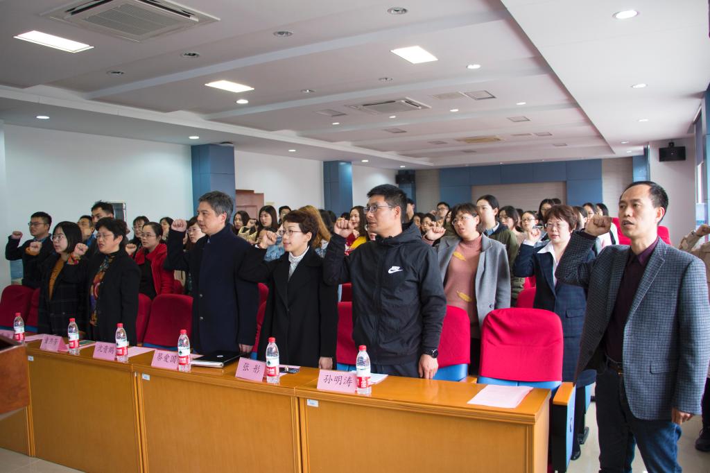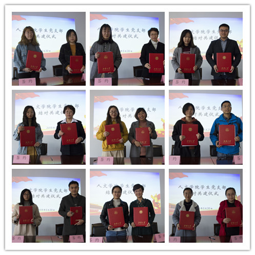 会议伊始,沈贵鹏书记上台致辞。他简单介绍了人文学院学生党建的基本情况。通过多年的实践人文学院党委从制度建设、思想宣传、文化营造等方面积极探索,逐步形成“党建+制度”、“党建+新媒体”、“党建+文化”、“党建+行动”的大学生党建工作模式,此次结对共建,也是师生支部深度融合、互帮互助的进一步实践,他就结对共建工作提出了建议,并表达了对活动的美好祝愿。接着,陆雪英带领在座党员重温了入党誓词。随后举行了学生党支部结对共建签约仪式。无锡市档案史志办机关第一支部、体育部专项二教研室党支部、人文学院7个教师党支部分别与我院9个学生党支部结对共建,各党支部书记上台签约并合影留念。