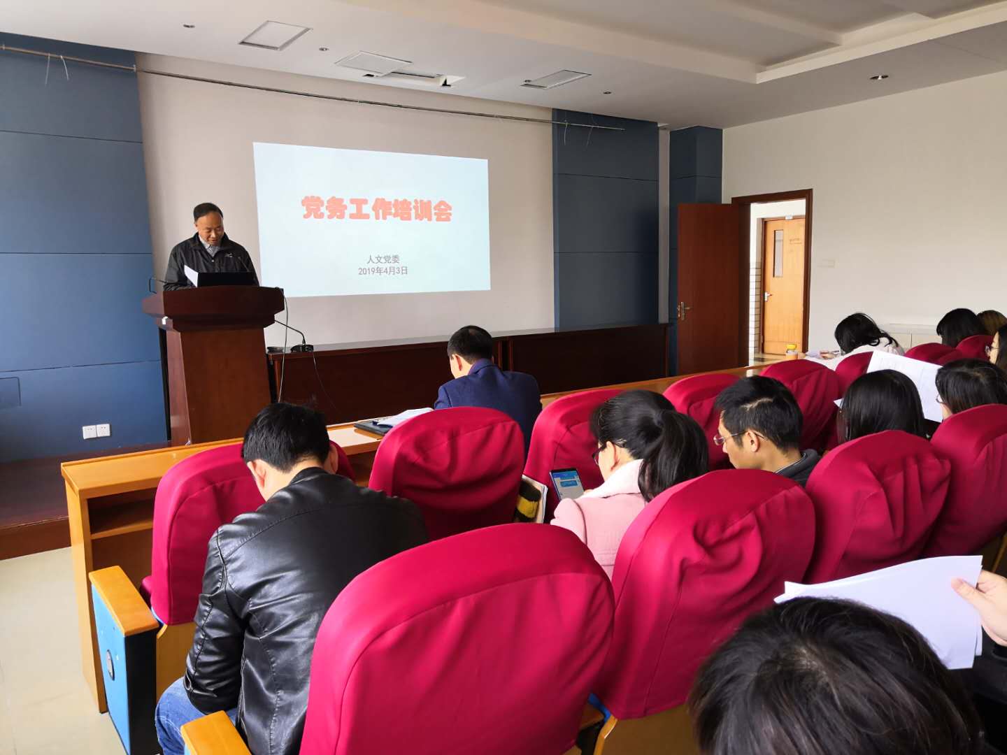 4月3日下午,我院在田家炳楼209会议室举行党务工作专题培训会暨第四次党代会工作动员部署会。院党委书记沈贵鹏、党委副书记兼副院长吴宝锁、院党委秘书陆雪英以及学院各党支部书记委员等参加会议。会议由陆雪英主持。