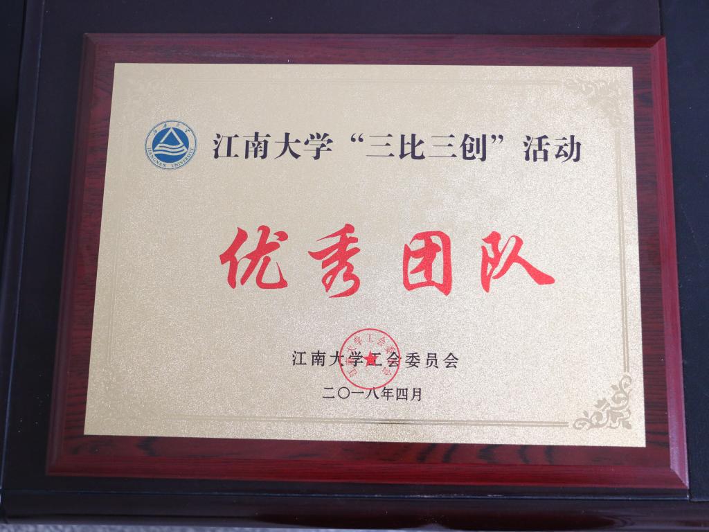 2018年4月在江南大学校工会举行的“三创三比”活动总结及表彰大会上,人文学院获得优秀团队荣誉。