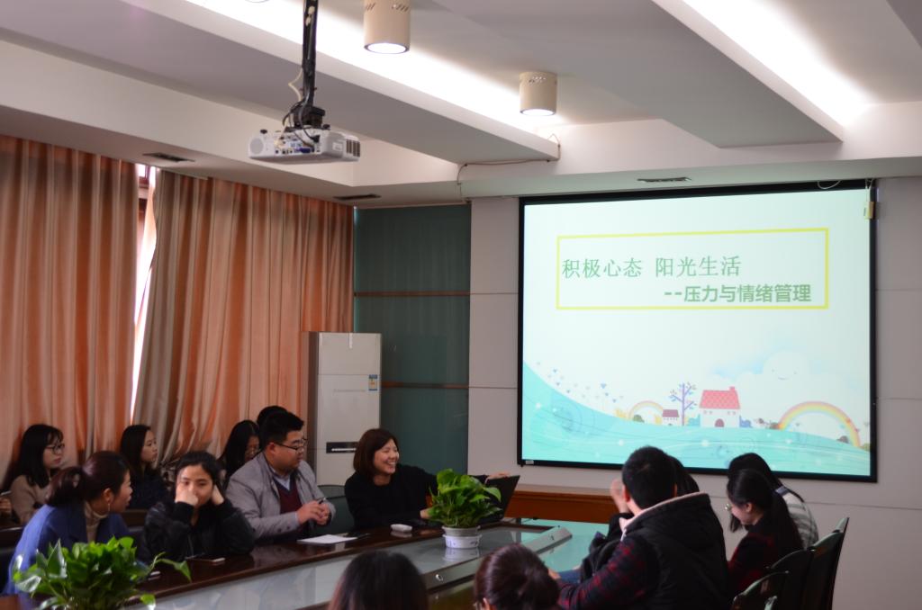 为进一步普及心理健康知识,增强学生的自我心理调适能力,帮助学生更好地缓解身心压力,实现全面发展,3月23日,2015级辅导员崔雪艳在田家炳楼207开展了“积极心态,阳光生活——压力与情绪管理”讲座。大三年级各班班干部和宿舍长参加本次学习。