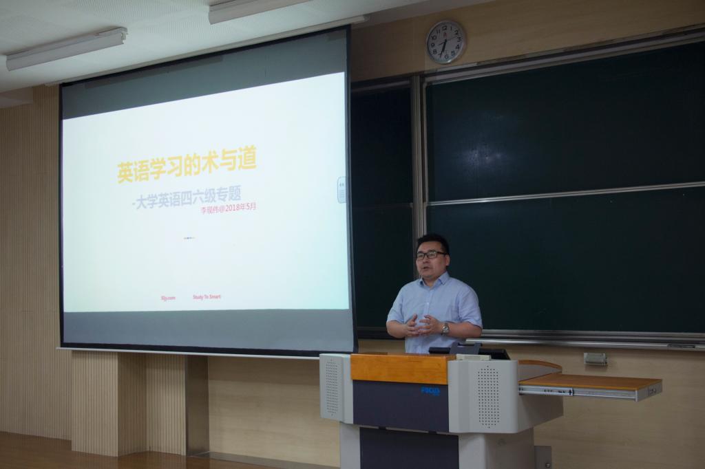 为帮助人文学子更进一步了解英语四六级考试,掌握四六级答题技巧,5月24日晚六点半,我院邀请资深英语培训讲师李现伟,于一教1B103为280余名学生举办了一场大学英语四六级专题辅导讲座。本次讲座由人文学院2017级辅导员邓昌海主持。
