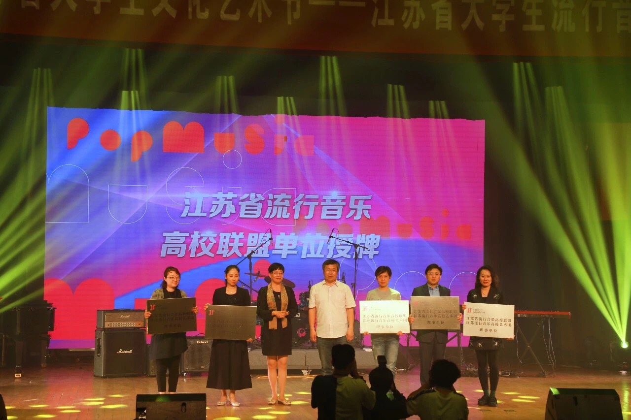 首届江苏省流行音乐大赛(高校赛)颁奖盛典暨江苏省流行音乐高校联盟揭牌仪式于5月20日19:30在南京艺术学院举行,本次大赛由共青团江苏省委、江苏省大学生联合会主办,江苏省流行音乐学会、南京艺术学院承办。江苏省流行音乐学会副主席、江南大学人文学院音乐系教师钱琳,校团委老师腾飞出席了本次颁奖盛典。