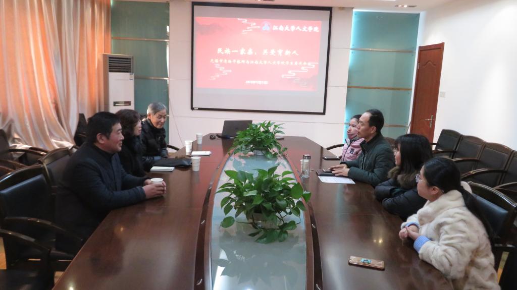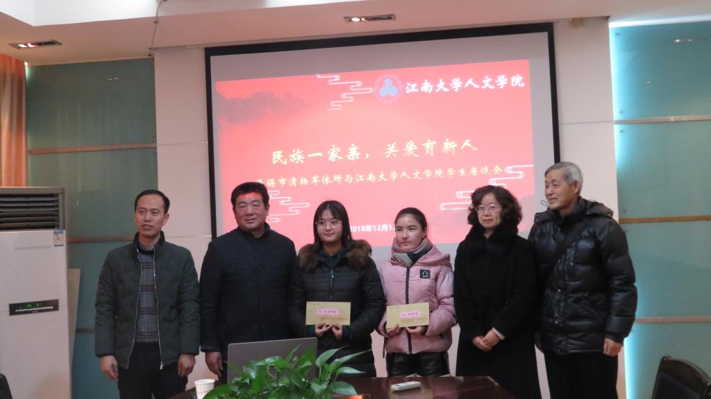 12月13日,无锡市清扬军休所与人文学院学生座谈会在人文学院207会议室顺利召开。军休所副所长蔡峥、军休所关工委主任王小进、副主任贾寿元和人文学院党委副书记吴宝锁、分团委书记黄凤琼以及2018级新疆籍少数民族学生代表共同参加了本次座谈会。