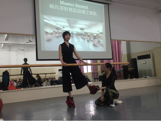 2019年10月9日,来自台湾中国文化大学舞蹈学系的何郁玟副教授,在江南大学艺术楼为舞蹈系的师生们进行了一场题为“Master Stretch辅具课对舞蹈训练之帮助”的讲座。并带来了一款舞蹈辅助训练的“神器”(舞蹈训练辅助鞋)。我系全体教师和学生出席了此次讲座,讲座现场气氛热烈。