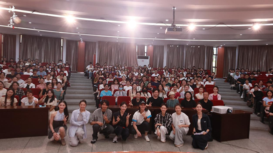 本次活动特别邀请到舞剧《牡丹亭》导演黄佳园携主演团队——杜丽娘饰演者胡婕、黄慧慧,柳梦梅饰演者罗昱文,春香饰演者张引、马驰,陈最良饰演者于建伟莅临交流。江南大学人文学院王芳副院长、舞蹈系系主任叶凌飞副教授出席活动,来自全校各院系学科专业的师生代表共同参与这场艺术盛宴。