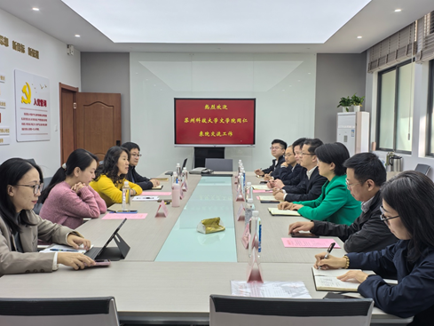 10月24日上午,苏州科技大学文学院院长路海洋、副院长孙虎一行7人来访我院,双方合作交流洽谈会在田家炳楼218顺利举行。人文学院党委书记王晖、副院长张春梅、中文系系主任陈佳冀、江南文化研究中心负责人黄晓丹、院长助理韩宇瑄等青年教师代表等参加了座谈交流。