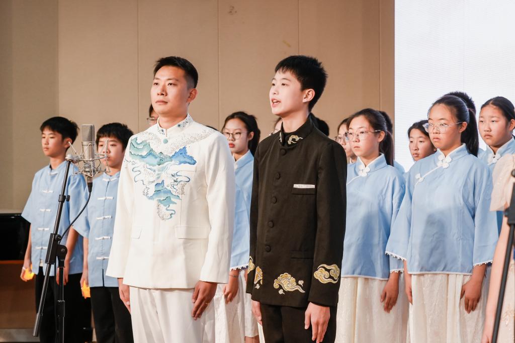 辅导员与学生同台展示、默契配合,轮番呈现红色经典。从《觉醒年代》舞剧中青年学子振臂高呼的热血场景,到《义勇军进行曲》奏响时全场肃立的庄严时刻;从《沁园春・雪》的豪迈壮志、《黄河大合唱》的磅礴气势,到《南泥湾》的悠扬婉转、《如愿》的温情传唱,整场舞台思政课以历史脉络为主线,将经典文艺作品作为生动载体,通过“历史叙事—艺术表达—价值引领”的思政创新模式让红色文化入目入耳,入脑入心,实现艺术感染力与思政引领力的深度融合。