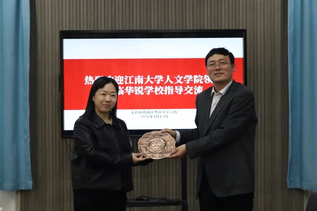 座谈会最后,王晖代表学院向无锡市华锐实验学校赠送纪念牌。